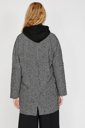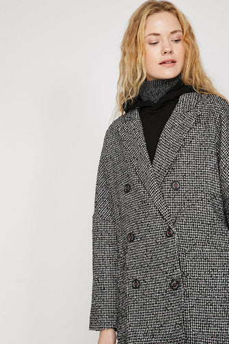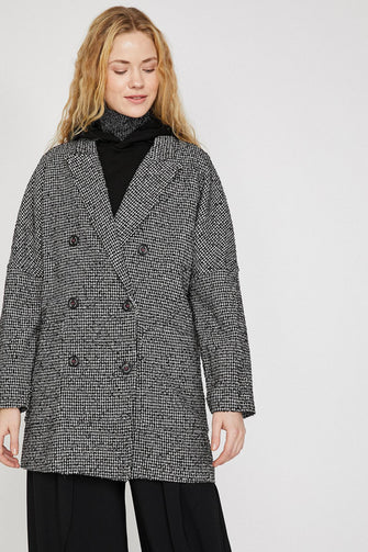Women Black Classic Collar Button Detail Pocket Detail Coat