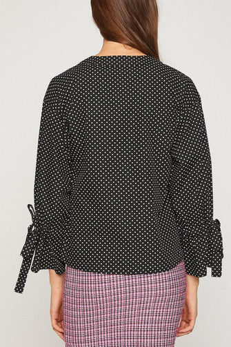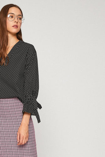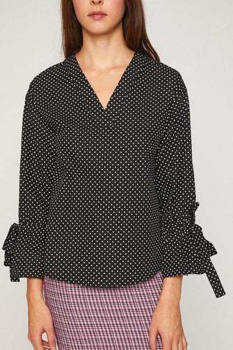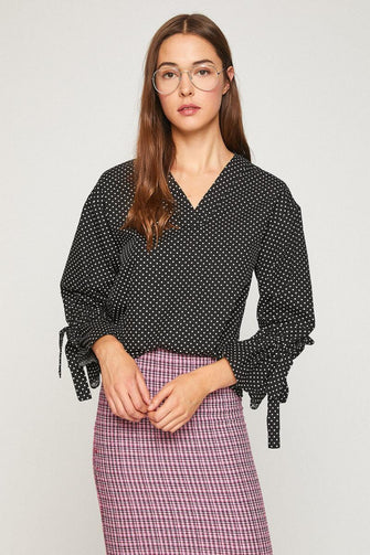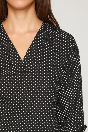 Women Black Long Sleeve V Neck Blouse