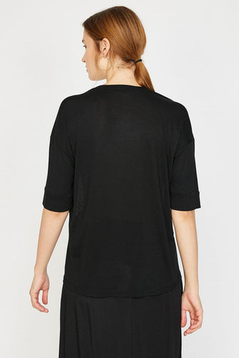 Women Black Short Sleeve Cycling Neck T Shirt