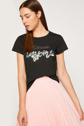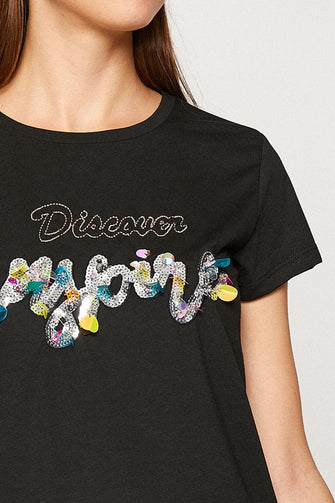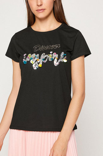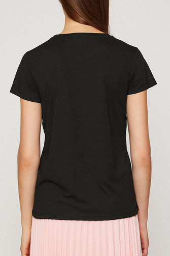 Women Black Short Sleeve Cycling Neck T Shirt 8YAK13736EK