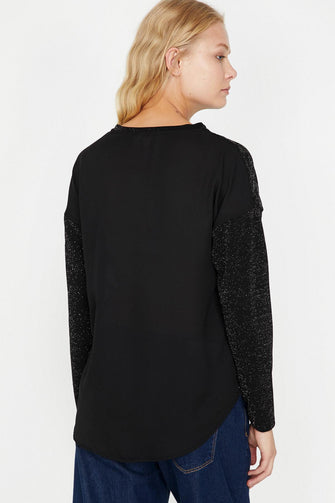 Women Black Sim Detailed T-Shirt 9KAK13069EK
