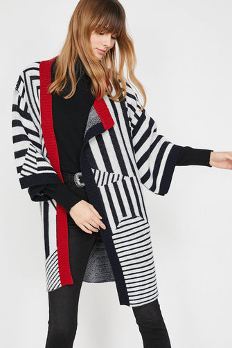 Women Black Striped Cardigan