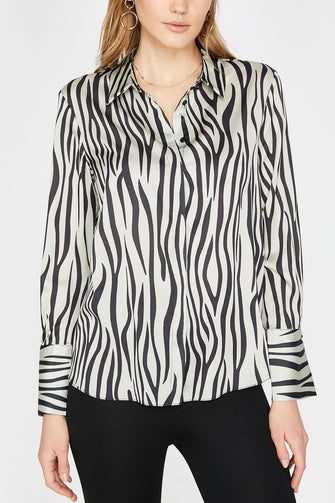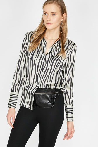 Women Black Vintage Lapel Long Sleeve Shirt