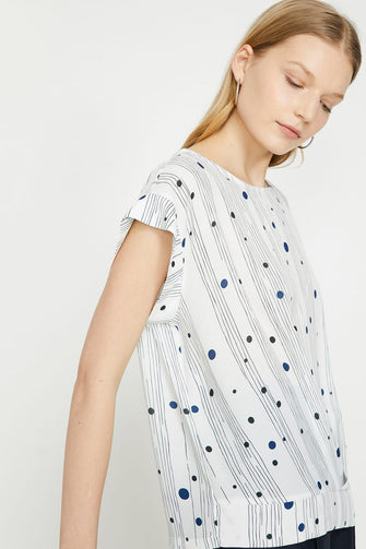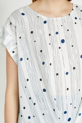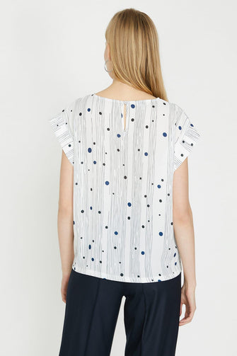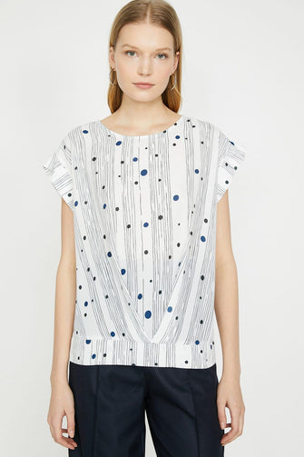 Women Blue Collar Short Sleeve Polka Dot Bluz