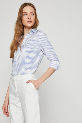 Women Blue Long Sleeve Blouse