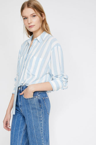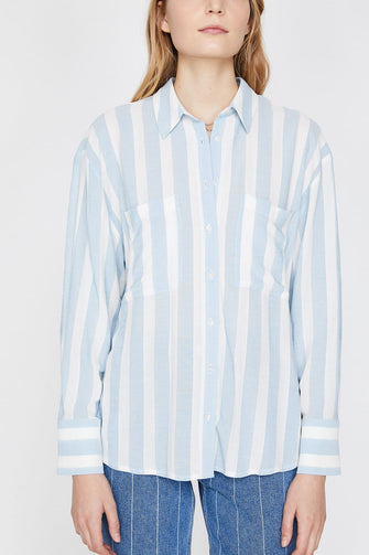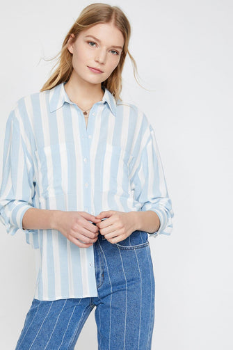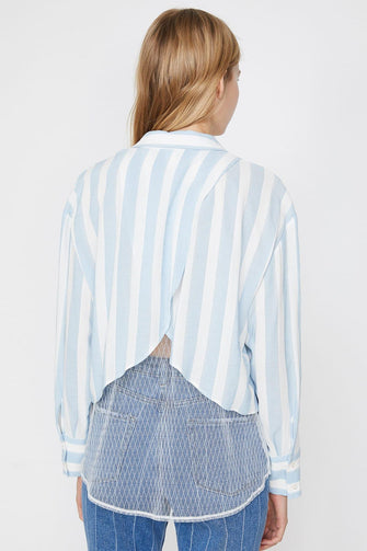 Women Blue Long Sleeve Fishnet Detailed Shirt