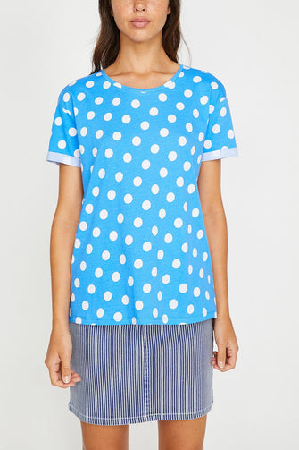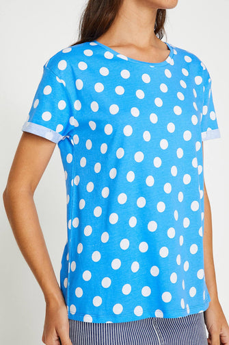 Women Blue Short Sleeve Cycling Neck T Shirt