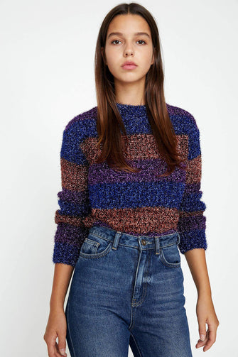 Women Blue Striped Sweater