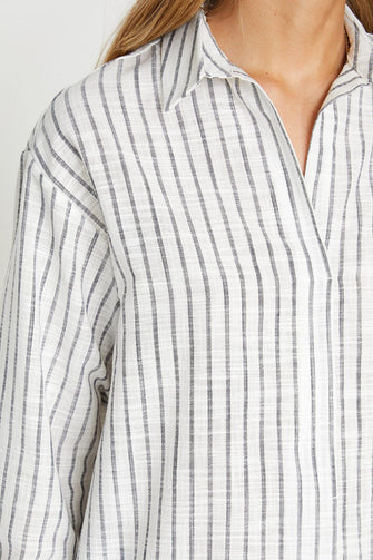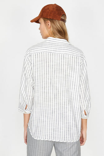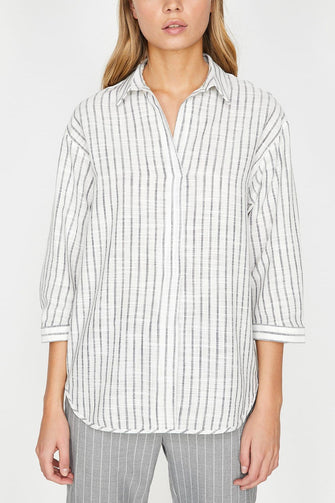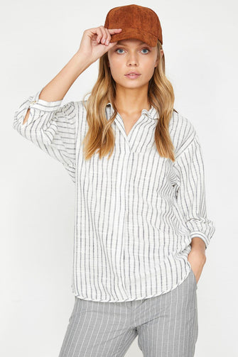 Women Blue V Neck 3/4 Sleeve Striped Blouse