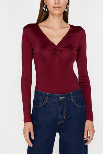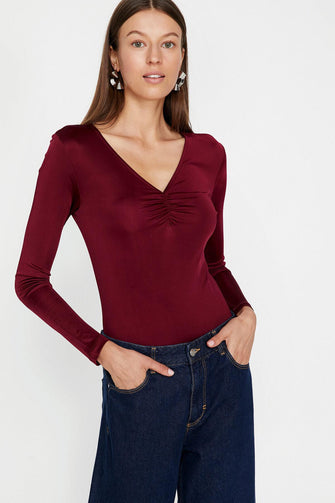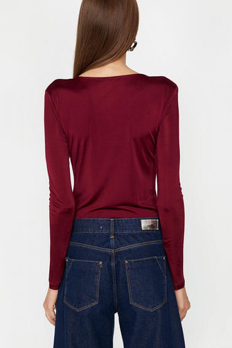 Women Burgundy Collar Detail T-Shirt "