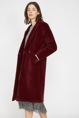 Women Burgundy Pocket Detail Coat 9KAK06192EW