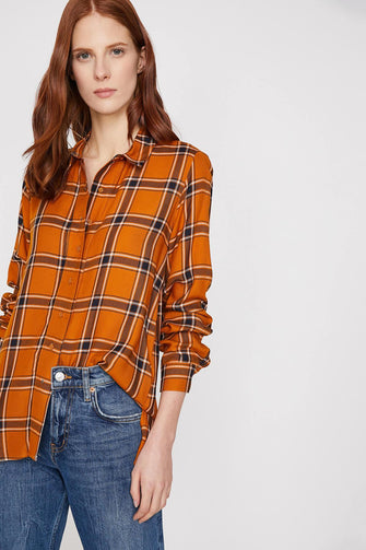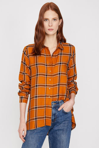 Women Coffee Plaids Shirt