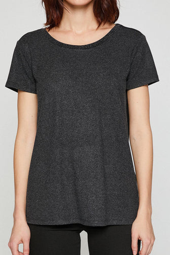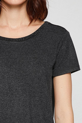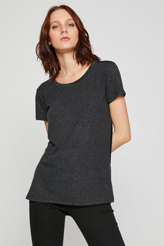Women Gray Short Sleeve Cycling Neck T Shirt