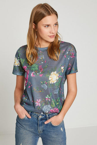 Women Gray Short Sleeve Cycling Neck T Shirt