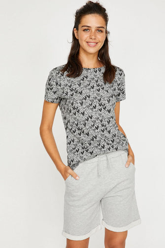 Women Gray Short Sleeve Cycling Neck T Shirt