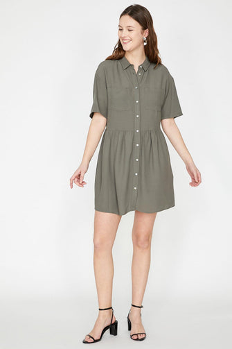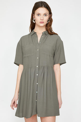 Women Green Button Detail Tunic