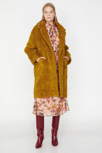 Women Green Classic Collar Coat