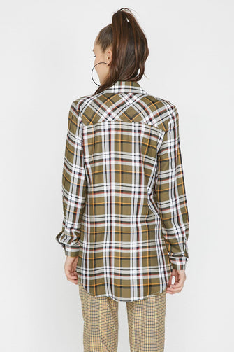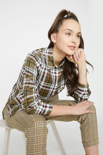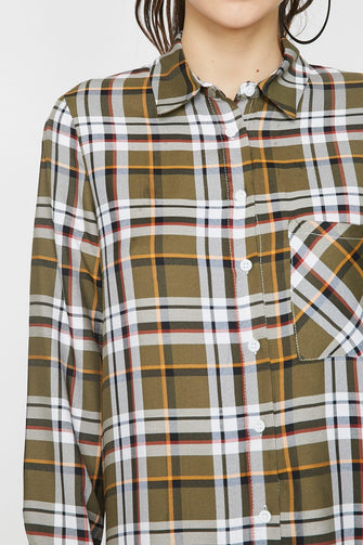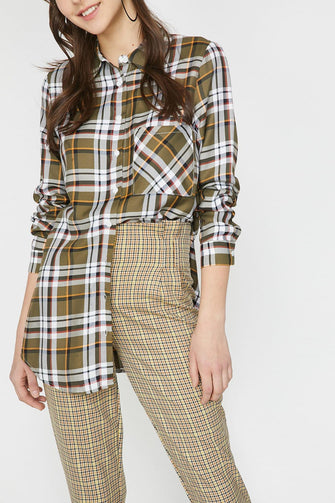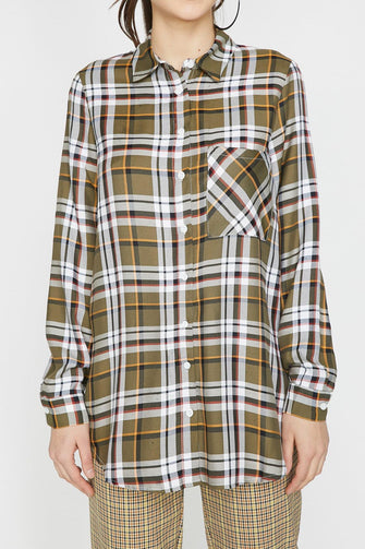 Women Green Classic Collar Pocket Detail Button Detail Long Sleeve Tunic