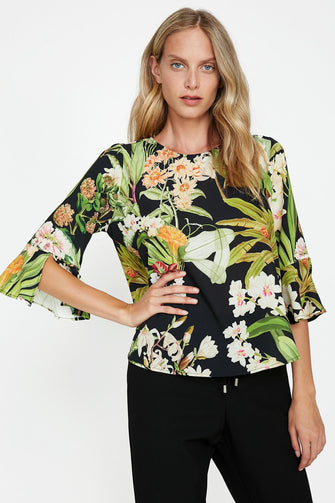 "Women Green Floral Print Blouse "
