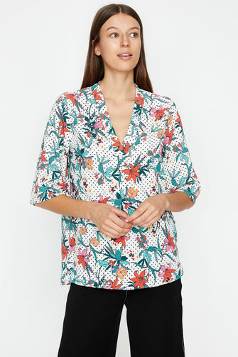 "Women Green Floral Print Blouse "