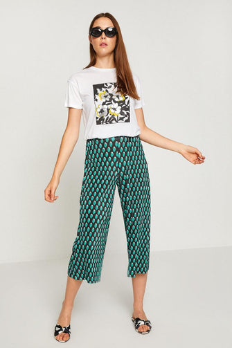 Women Green High Waist Casual Cut Pants