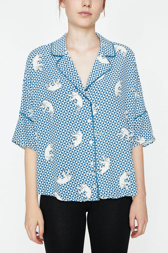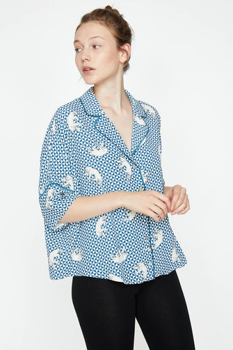 Women Green Print Sleepwear Top
