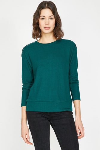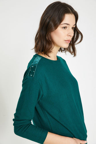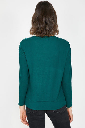 Women Green Sequins Detail T-Shirt