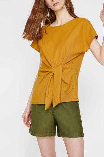 Women Mustard Bike Collar Short-Sleeve T-Shirt