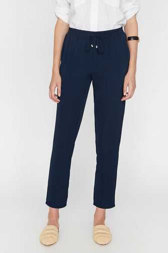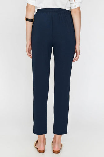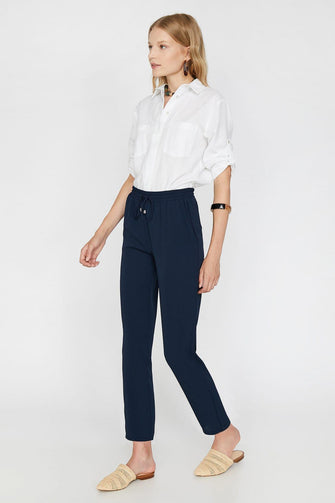Women Navy Blue Normal Waist Pocket Detail Pants