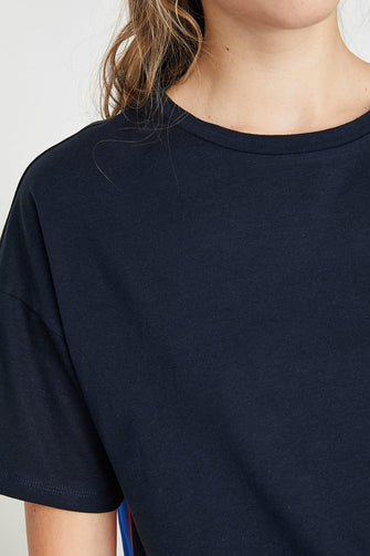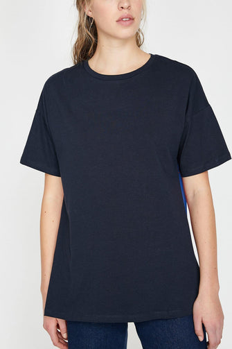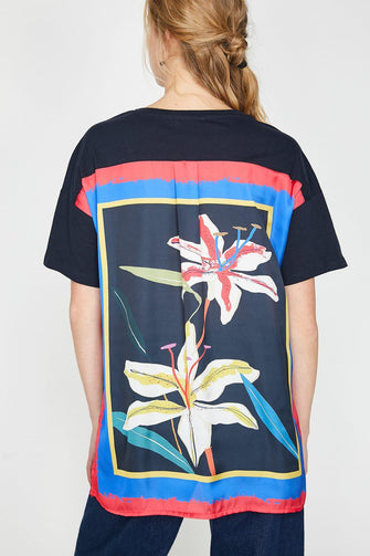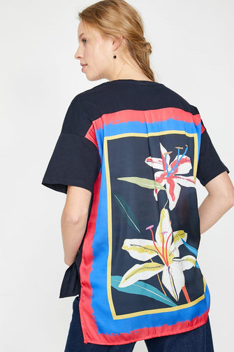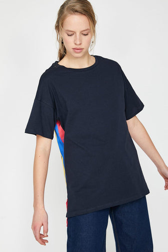 Women Navy Blue Pattern T-Shirt