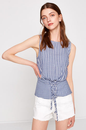 Women Navy Plaid Bluz