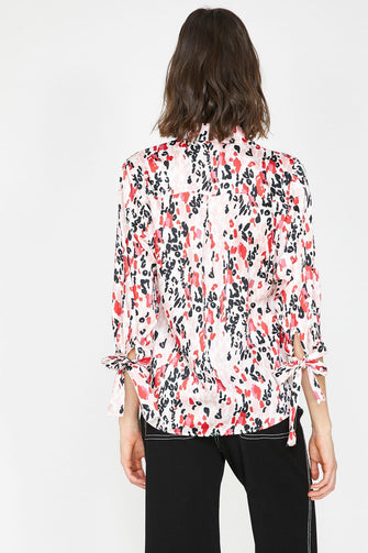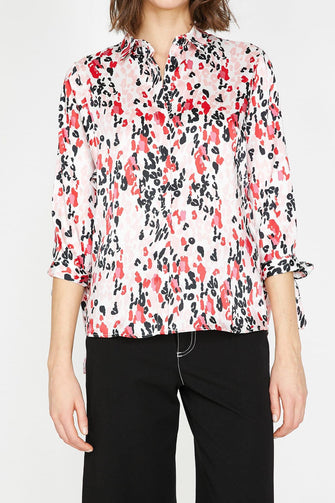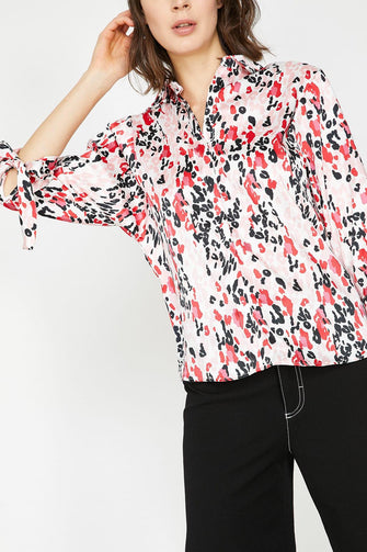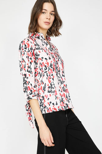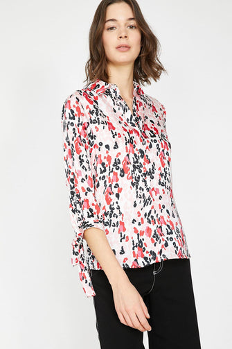 Women Pink Vintage Lapel Long Sleeve Print Shirt