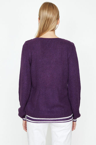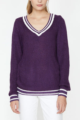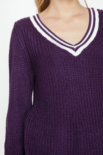 Women Purple V-Neck Sweater