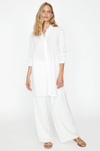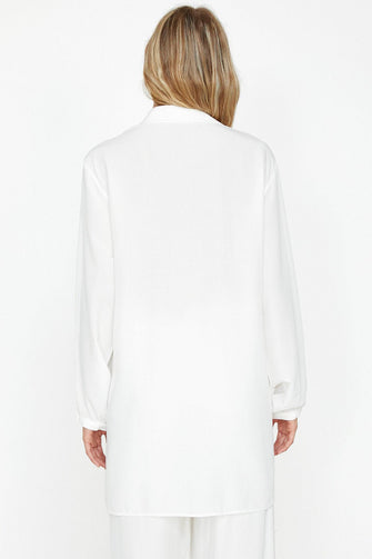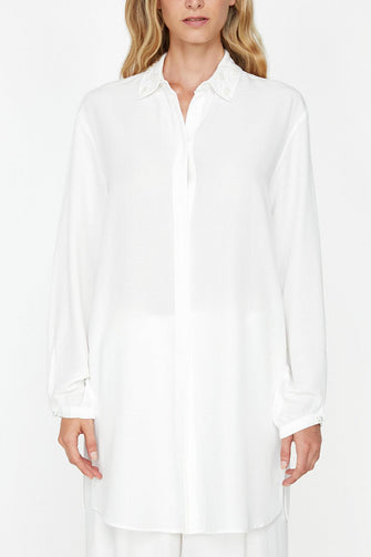 "Women Raw White Collar Tunic"