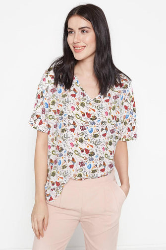 Women Raw White Print Blouse