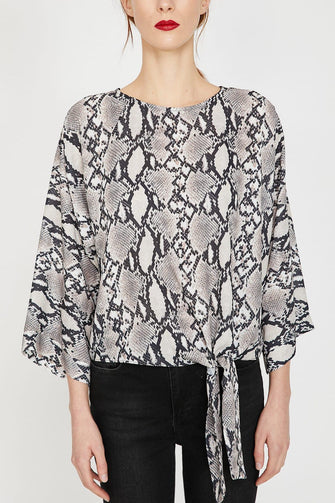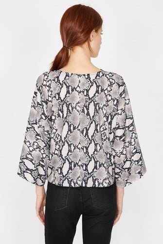 Women Raw White Snake Skin Print Blouse