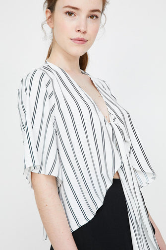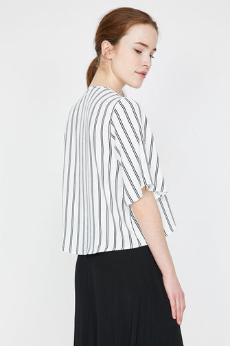 Women Raw White V Collar Blouse