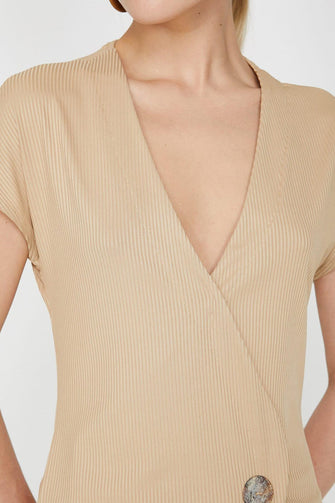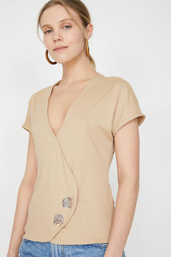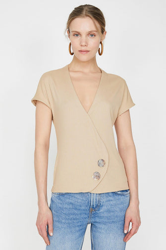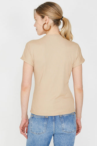 Women Raw White V-Neck Short-Sleeve T-Shirt
