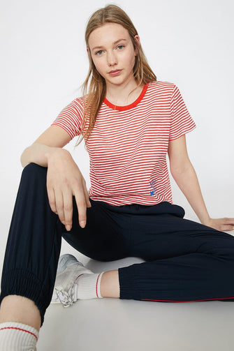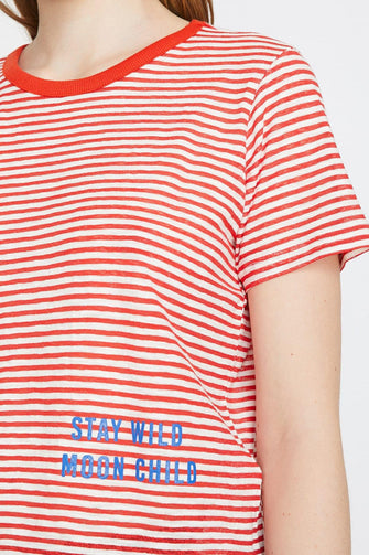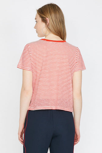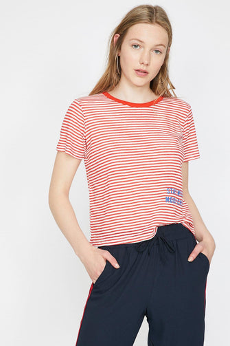Women Red Bike Collar Short Sleeve Printed T-Shirt
