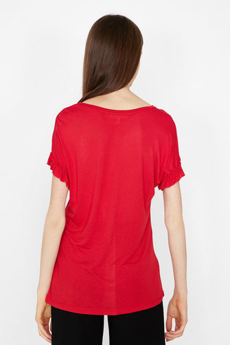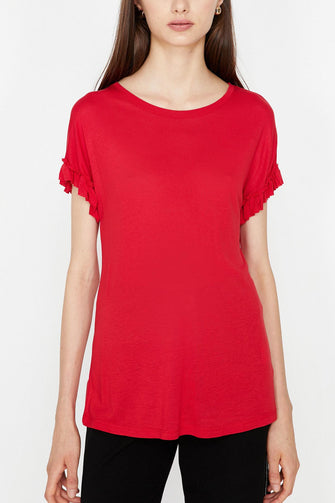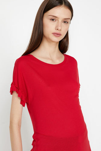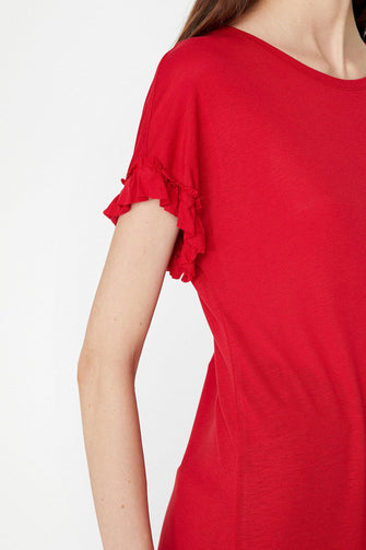 Women Red Ruffle Detail T-Shirt