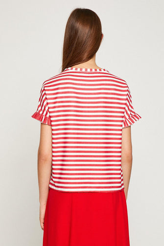 Women Red Stripe T-Shirt