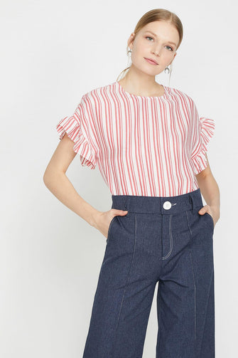 Women Red Striped Blouse