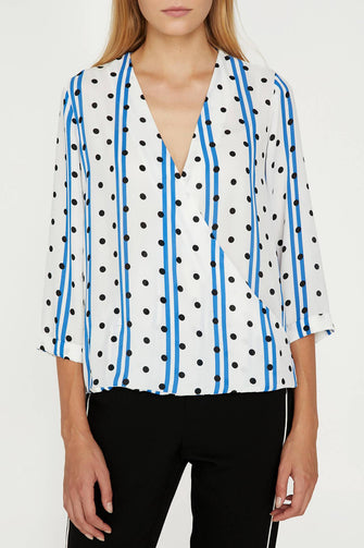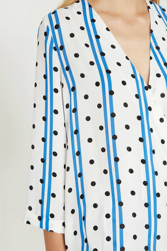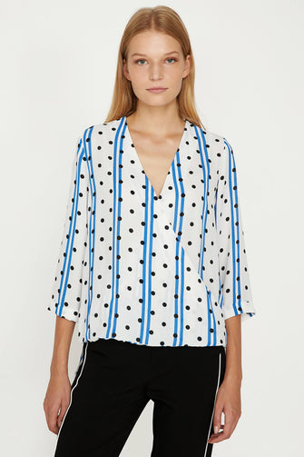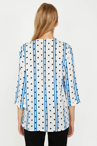 "Women 'S Blue Polka Dot Detaylı Bluz "