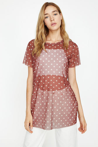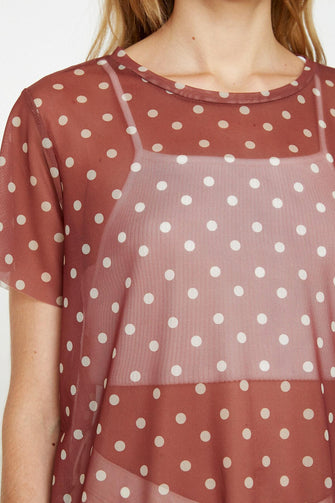 Women 'S Coffee Polka Dot Detail T-Shirt