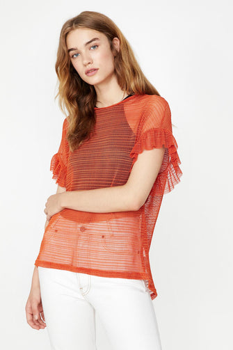 "Women 'S Coffee Ruffle Detail T-Shirt "