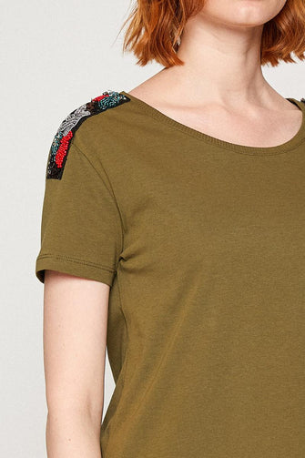 Women 'S Green Short Sleeve Cycling Neck T Shirt