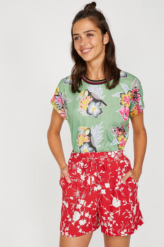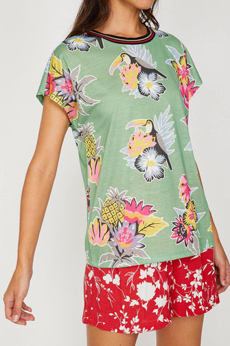Women 'S Green Short Sleeve Cycling Neck T Shirt