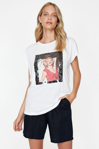 "Women 'S White Sequins Detail T-Shirt "