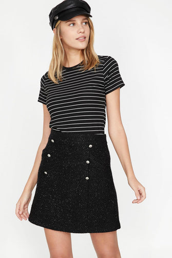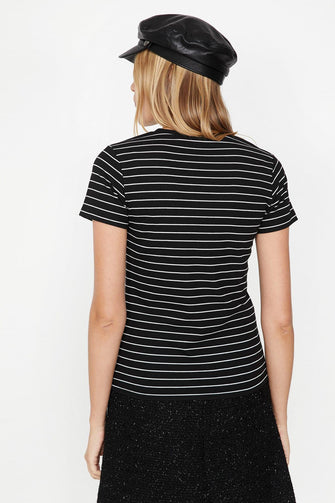 Women White Bike Collar Short Sleeve Stripe T-Shirt