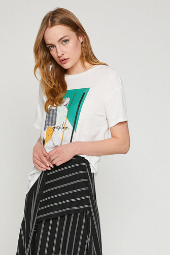 Women White Short Sleeve Cycling Neck T Shirt